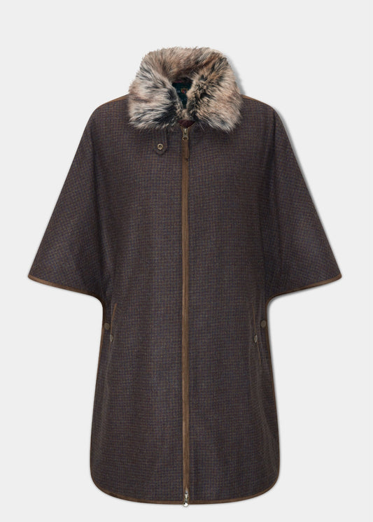 Surrey Ladies Tweed Cape In Bramble