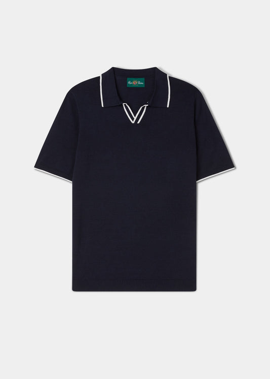Knighton Luxury Cotton Polo With Pointelle Detail In Dark Navy
