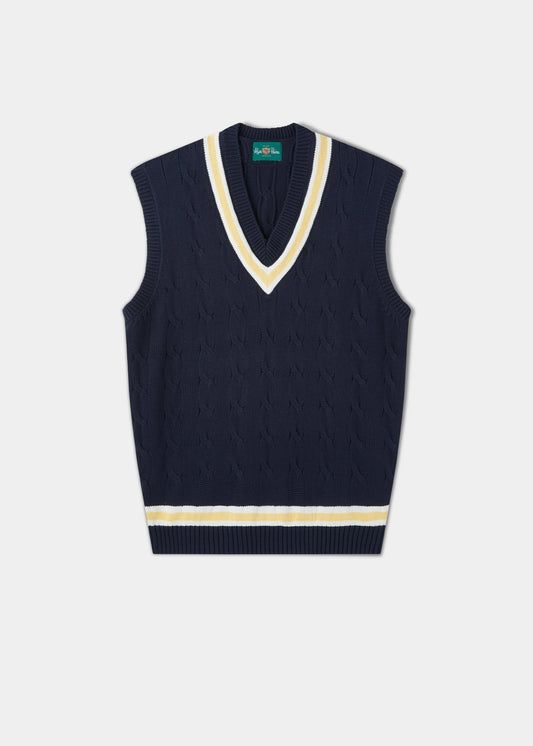 Chadbury Cable Cricket Slipover In Dark Navy & Sun