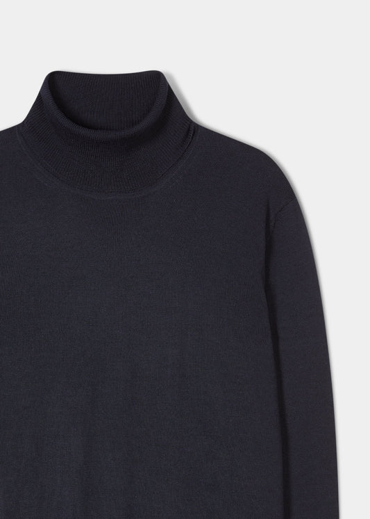Rollkragenpullover aus Merinowolle von Linton in dunklem Marineblau – normale Passform