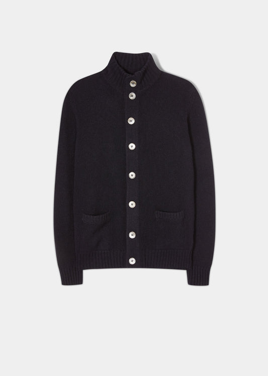 Cornwall-Lammwoll-Cardigan in Marineblau – klassische Passform