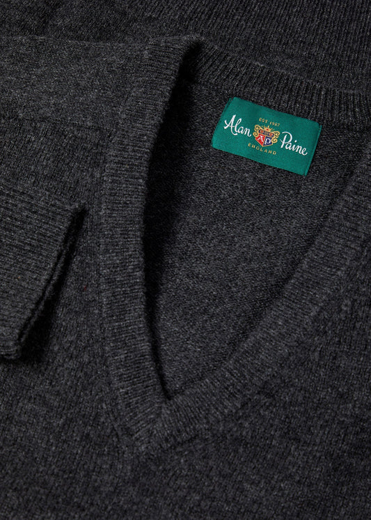 Hampshire Herren-Lammwollpullover in Anthrazit – klassische Passform