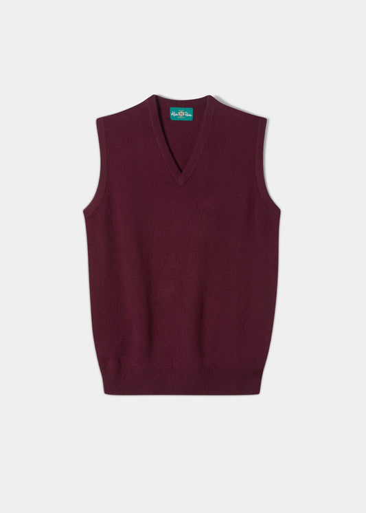 Norfolk Herren-Slipover aus Lammwolle in Dubonnet – klassische Passform