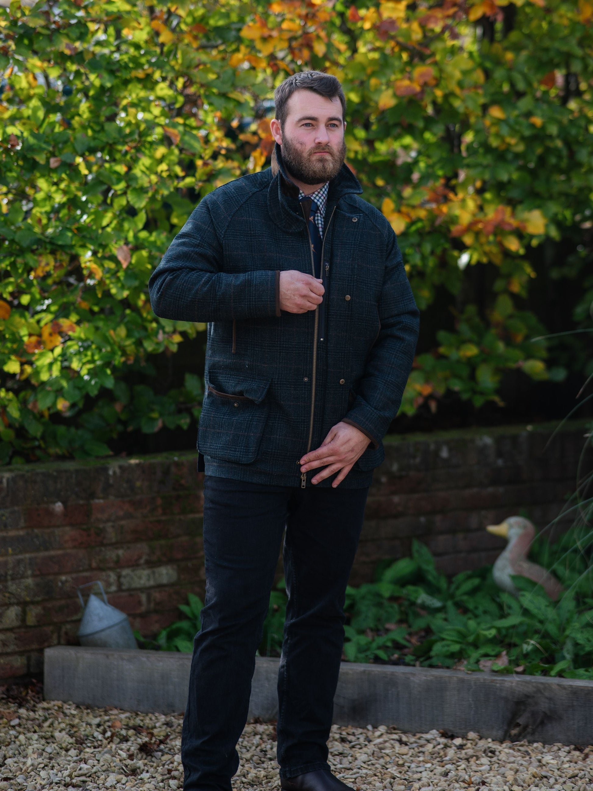 Wasserdichter Surrey-Tweed-Mantel mit grünem Karomuster – Shooting Fit