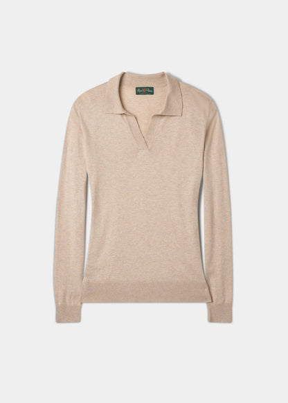 Uma Cotton Cashmere Open Placket Jumper In Sand